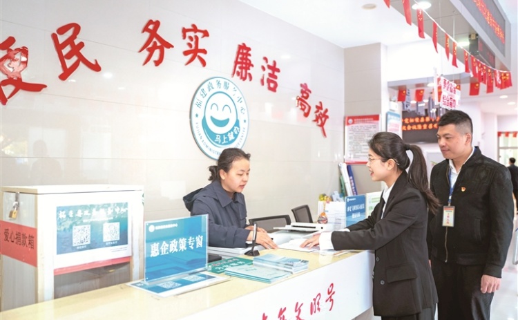 福建省柘荣县纪委监委通过常态化开展察访、点题整治、强化大数据监督等方式,坚决清除破坏营商环境的“四风”问题,以作风持续向好引领营商环境持续向优。图为该县纪检监察干部在县政务服务中心了解相关情况。 袁镔 摄