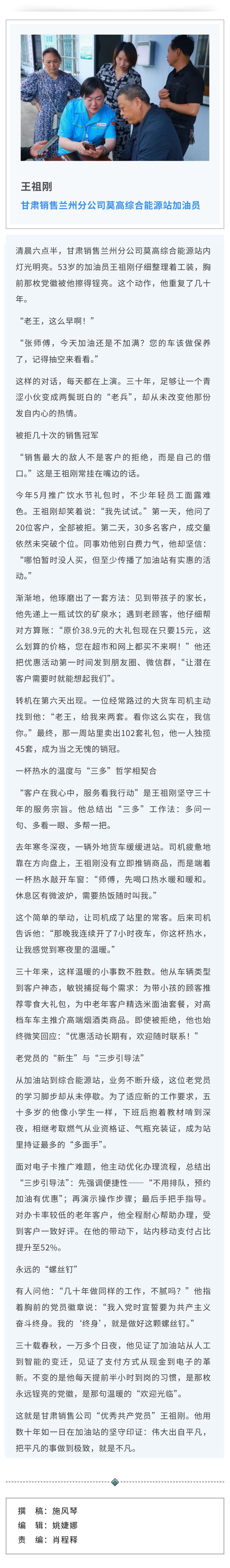 甘肃销售王祖刚:三十载初心如磐 用温情守护加油站的“老兵”