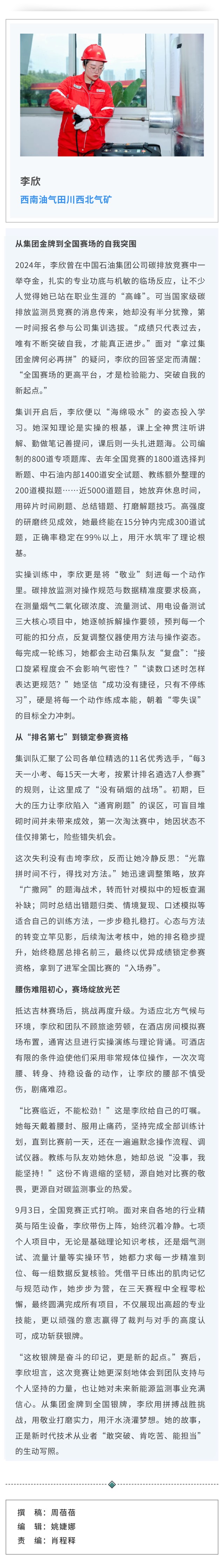 西南油气田李欣:不恋过往金牌,勇闯全国赛场