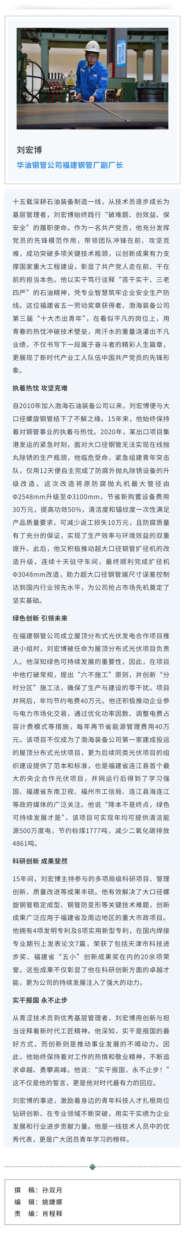 华油钢管公司刘宏博:创新闪耀青春志 实干浇灌梦想花