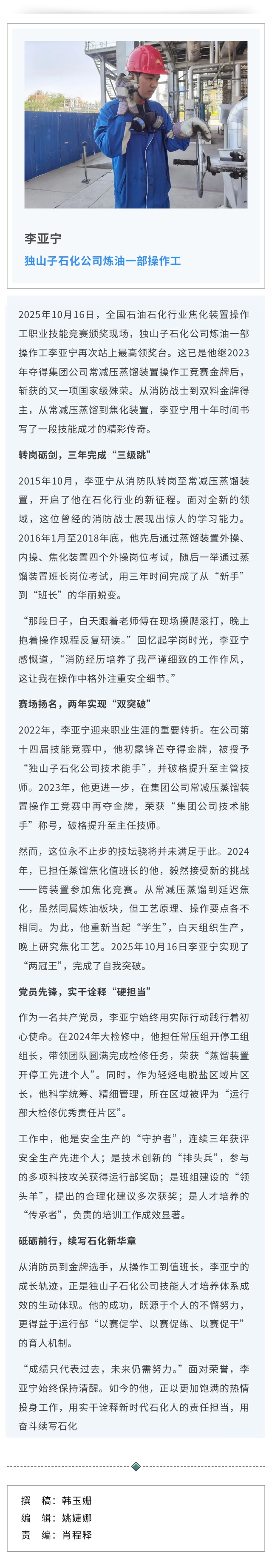 独山子石化李亚宁:十年砺剑 双金闪耀